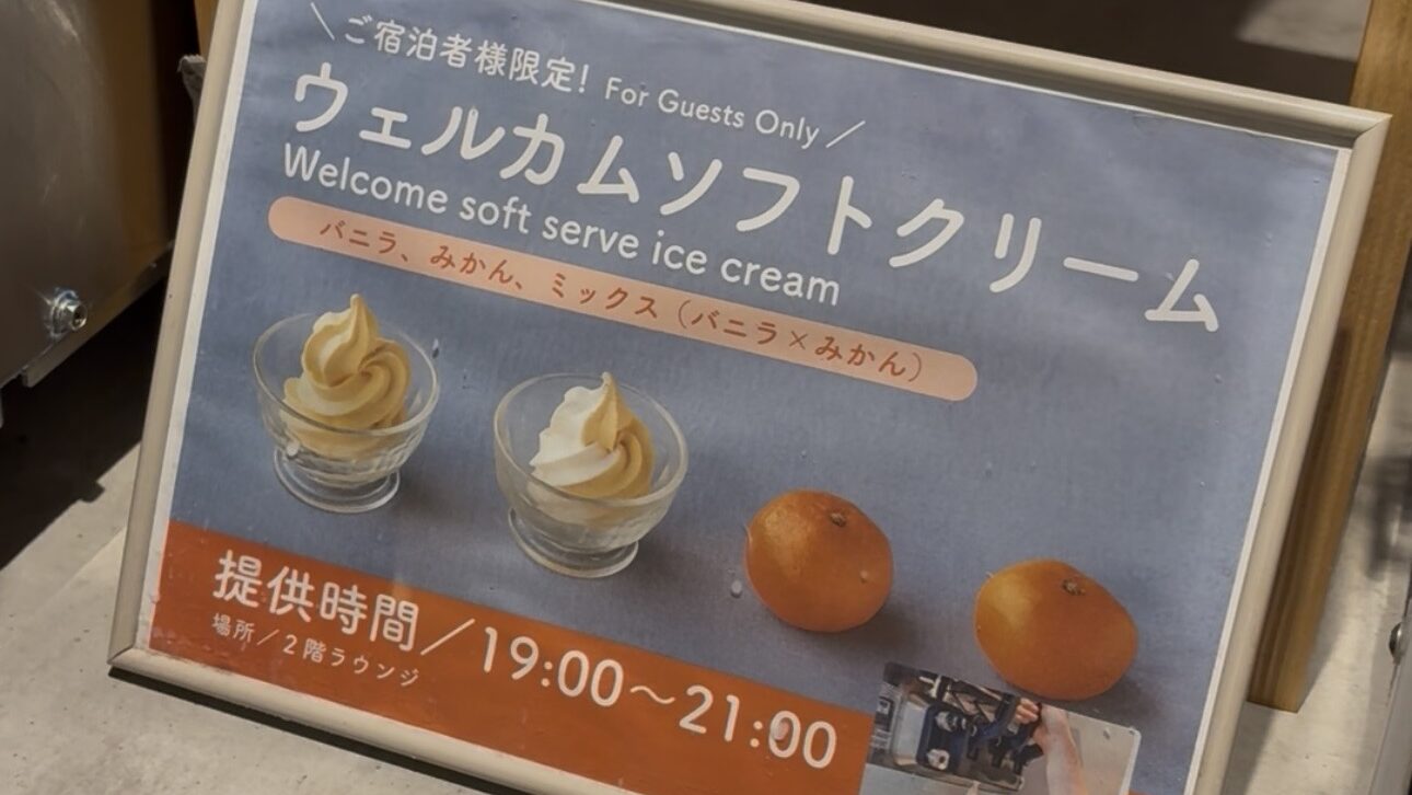 そして、絶対に忘れてはいけないのが「宿泊者限定の無料ソフトクリーム」! みかん味なのも嬉しい。