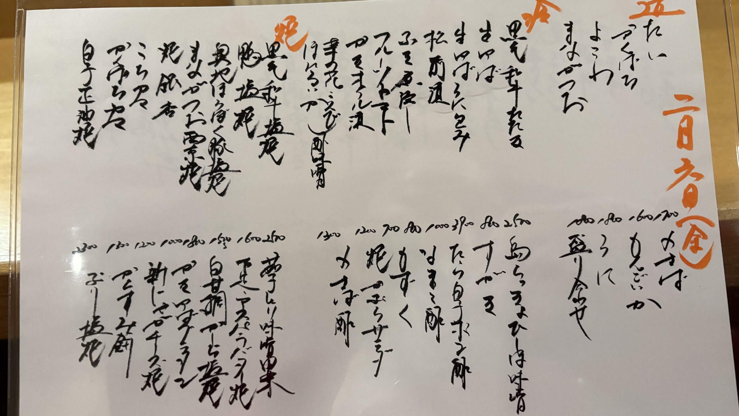 仕事モードが抜けきっていなかったのか、最初は達筆すぎるお品書きが全く解読できず……(笑)。素直に店員さんにおすすめを伺いました。