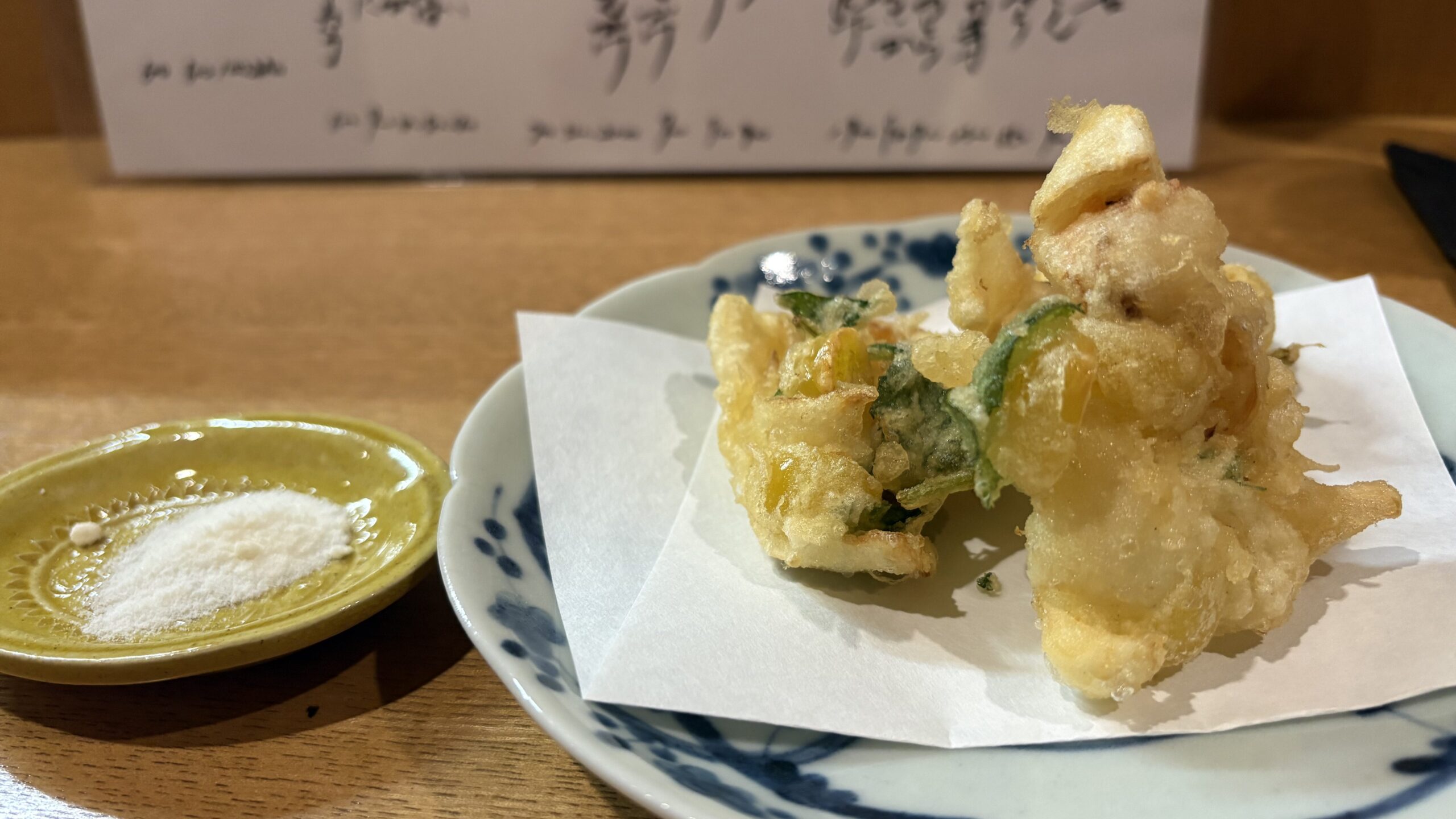 - かき揚げ(大将のお気遣いで、ひとりにちょうどいい数に減らしてくださいました。感謝!)